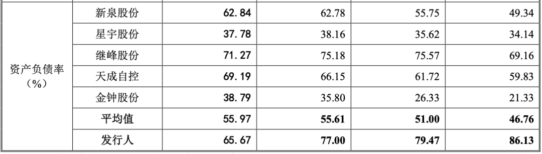 这也并非唯一的不合理情况,毓恬冠佳极高的偿债压力也与高额分红之间矛盾重重。根据招股书,2021年-2024年上半年毓恬冠佳的负债率分别是86.13%、79.47%、77%、65.67%;同期同行可比公司均值分别为46.76%、51%、55.61%、55.97%,也就是说。毓恬冠佳的负债率远高于同行平均水平,面临沉重的负债压力。