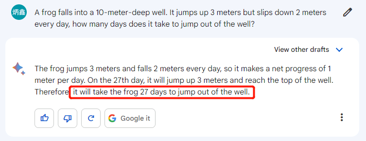 但在后续的一系列测试里,这应该是 Bard 回答得最好的一个问题了。