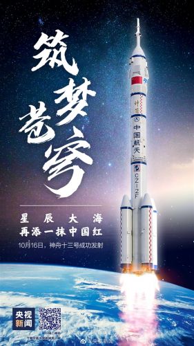 北京时间10月16日00时23分,在酒泉卫星发射中心,长征二号F遥十三火箭发射神舟十三号载人飞船,并送入预定轨道,发射任务取得圆满成功!