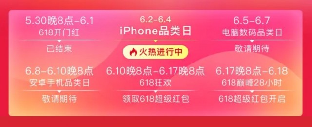 另外,6月10日晚上8时开始,“618巅峰28小时”活动将全面预热,6月17日晚8时至6月18日24时正式开启。
