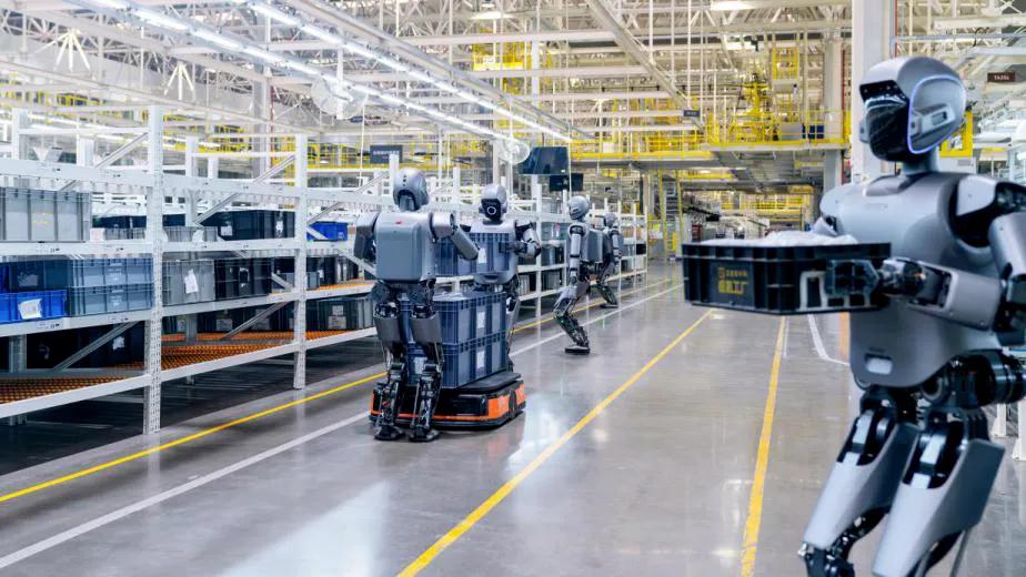 离众擎不远,也身处深圳的优必选科技,研发的工业人形机器人Walker S1在极氪5G智慧工厂,开展全球首例多台、多场景、多任务的人形机器人协同实训。