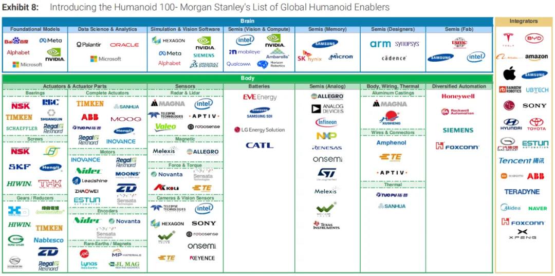 前不久,摩根士丹利发布了一份《The Humanoid 100: Mapping the Humanoid Robot Value Chain》(人形机器人100:绘制人形机器人价值链图谱)。