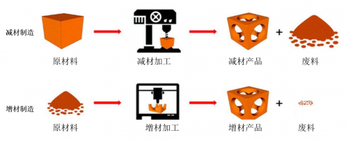 而增材制造则相反,增材制造是将材料(包括液体、粉材、线材或块材等)自动化地累加起来成为实体结构的制造方法。