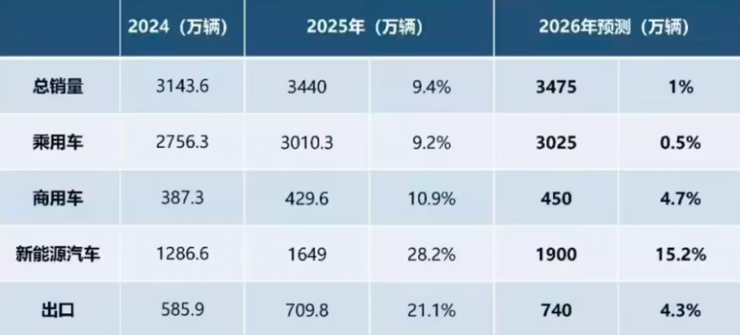 中汽协预计 2026 年中国汽车总销量 3475 万辆,同比增长 1%汽车
