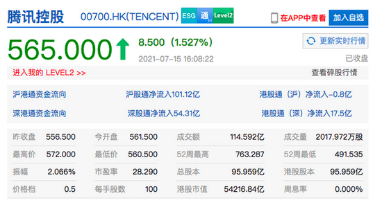 此前有消息称阿里巴巴和腾讯考虑互相开放生态系统,腾讯控股港股收涨1.5%,7月15日下午消息。