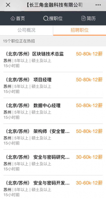 此次,长三角金融科技有限公司招聘的岗位不仅数量多,薪酬待遇也十分具有竞争力。招聘信息显示,区块链技术总监、数据中心经理的月薪均在50-80k。