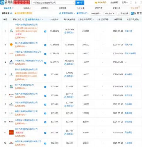 企查查股权穿透显示,该公司由中国人寿(601628)、新华保险(601336)、中国财险(02328.HK)等共同持股。