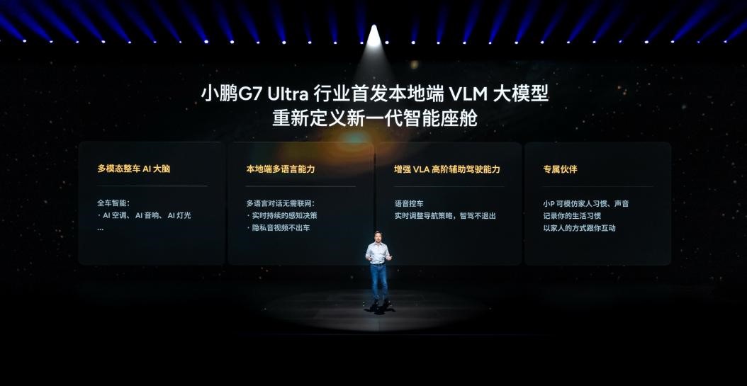 小鹏G7搭载行业首发的本地端VLM大模型更是颠覆了人车交互方式。VLM大模型是车辆理解世界的AI大脑,将成为下一代AI汽车的标配,重新定义下一代智能座舱全新交互体验。这个“智慧管家”能够理解、记忆用户需求并提供定制化专属服务,使智能座舱从传统的被动接收按键、屏幕、语音等指令,进化到无需指令即可主动服务。基于VLM模型的进化,在未来,汽车不只是交通工具,更是真正拥有思考与情感的伙伴。