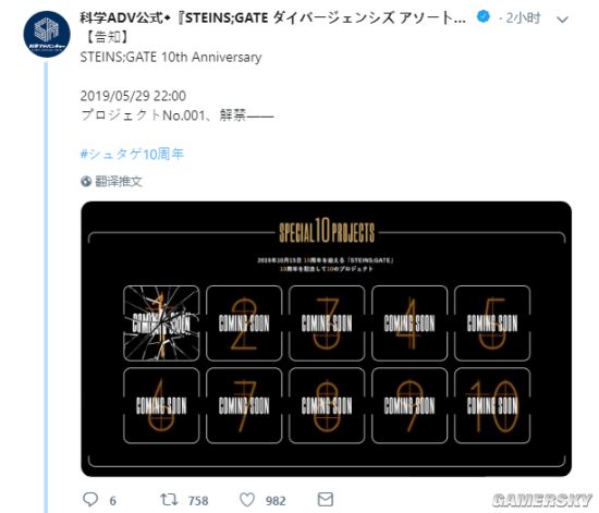 《命运石之门》十周年首个企划即将公布:明日晚9点快报