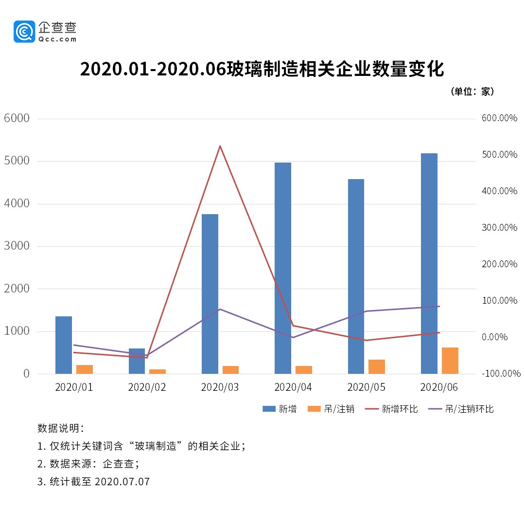 近半年来,我国玻璃制造相关的企业新注册总量为2.05万家。四月份以来,注册量持续高企,6月份数据已突破5000大关。