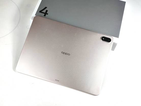 从背部设计来看,OPPO Pad 4 Pro提供了晨曦微光、深空灰、星河银三种配色,笔者拿到的是全新的晨曦微光配色,通过AG工艺呈现出微渐变的效果,更简约,更年轻,颜值非常高。