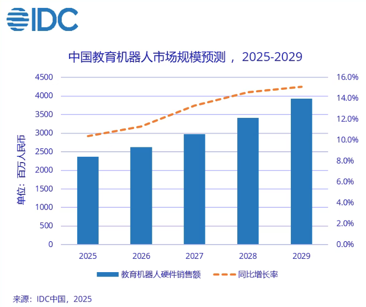 IDC:2025年上半年中国教育机器人市场硬件销售额10.7亿元快讯