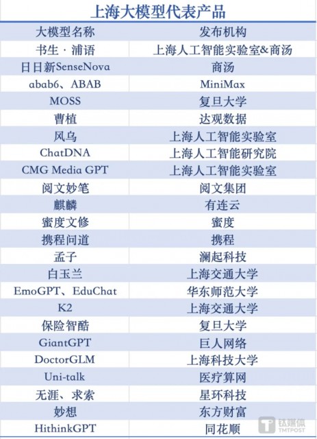 上海大模型代表产品一览