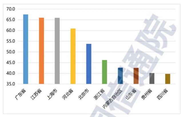 综合算力评价结果Top10省份。数据来源:中国信通院