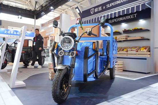 而智能货运三轮车铠运系列,则以强劲动力、坚固承载、智能安全、驾乘舒适等特色,让众多观展观众眼前一亮。在安全与舒适配置上,铠运系列搭载智能光感大灯,可根据环境光线自动开关,黄昏、夜间行车更安全省心;智能转向系统可随转动车把自动开启转向灯,实现有效警示、降低事故隐患。在驾乘体验方面,人机工程学座椅采用加厚发泡与腰靠支撑,贴合人体曲线、让驾驶者驾驶更轻松。此外,该系列还应用了人性化操控布局,配合上置手刹,让驾驶者更省力便捷。
