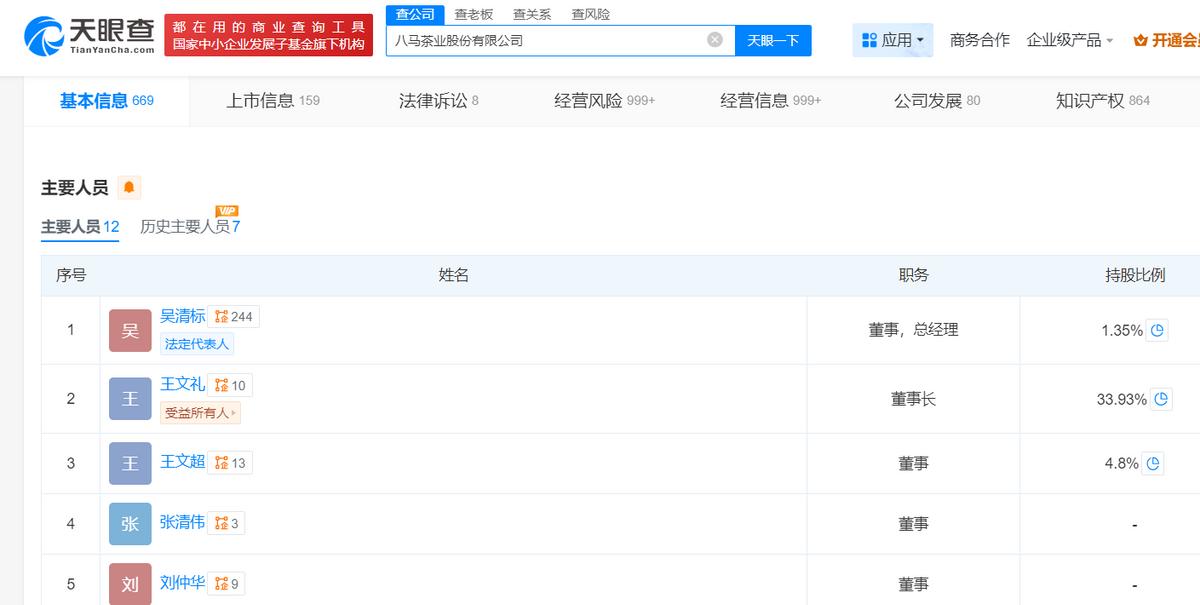 但在这方面,以王文礼为核心的王氏家族,对八马茶业的重要职位占比较高。