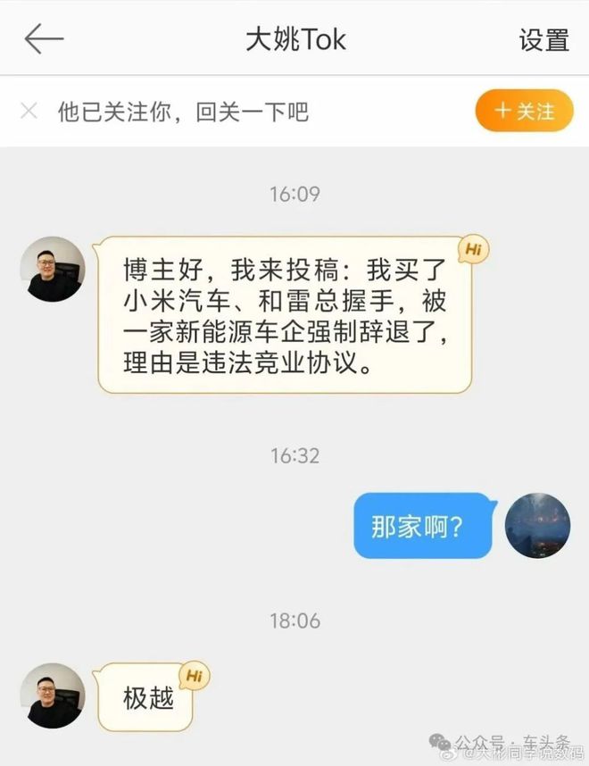 今天有个有意思的事,一位首批小米SU创始版车主,交付仪式上被雷军亲自开过车门的人,自称被另一家新能源车企辞退了。