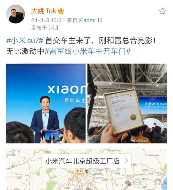 4月3号,小米首批车主交付,这位车主还和雷军合了影,亲身体验了百亿大佬为我开门。
