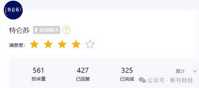 截至7月28日,黑猫投诉平台数据显示,特仑苏累计收到561条投诉,其中427条已获回复,325条完成处理,投诉完成率为57.93%。消费者投诉主要涉及产品开封后出现异味、结块等变质问题,以及因包装破损遭拒退货等情况。