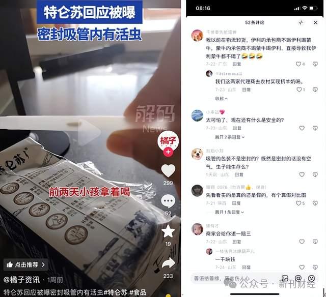 3.6元一盒的特仑苏牛奶被曝喝出蚂蚁观点