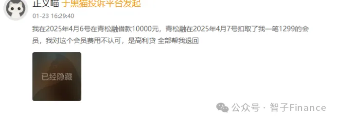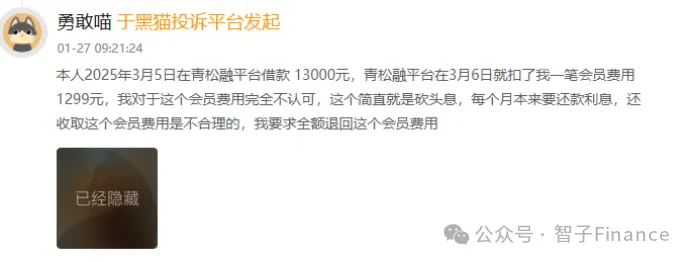 梳理典型投诉案例可见,会员费金额无统一标准,有高有低:2025年4月,有用户借款1万元,次日被扣款1299元;