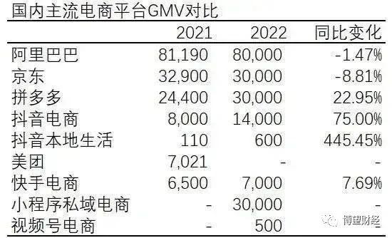 再看 GMV 增速的对比,有数据显示,拼多多 2022 年 GMV 预计超过 3 万亿元,同比增长 22.95%;阿里巴巴 2022 年 GMV 预计达 8 万亿元,同比减少 1.47%;京东 2022 年 GMV 预计达 3 万亿元,同比减少 8.81%,拼多多成为电商三巨头里依然保持快速增长的唯一平台,令对手们望尘莫及。