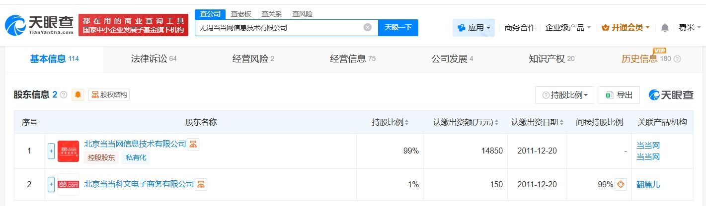 无锡当当网信息技术有限公司成立于2010年8月,法定代表人为李俭,注册资本1.5亿人民币,经营范围包括计算机软件及硬件研发、技术服务及技术培训等,由北京当当网信息技术有限公司、北京当当科文电子商务有限公司共同持股。
