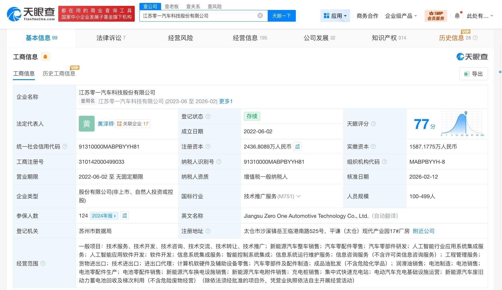 天眼查App显示,近日,江苏零一汽车科技有限公司发生工商变更,企业名称变更为江苏零一汽车科技股份有限公司。