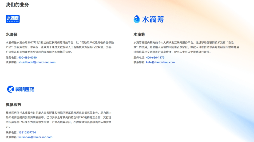 出现在朋友圈等社媒平台的水滴筹捐款链接,是大部分人对水滴公司的第一印象。这也让很多人认为,水滴公司是一个互联网公益性组织。其实不然,水滴公司曾回应过,“水滴筹不是公益组织”,而水滴公司也不只是做水滴筹这一项业务。