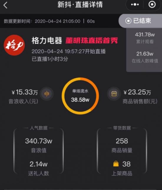 就连董明珠自己也坦言,抖音直播带货首秀“很失败”。