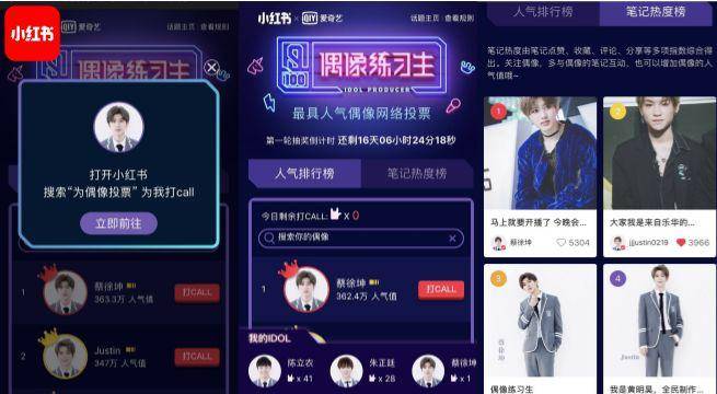 图为小红书对偶像练习生的赞助