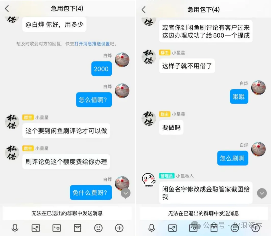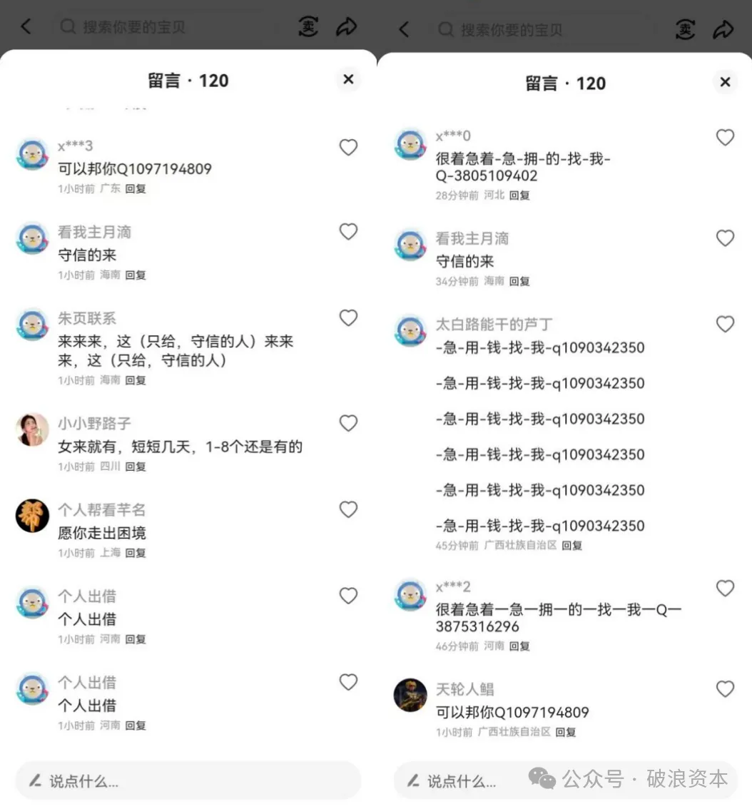 破浪资本多方实测发现,闲鱼平台上的非法放贷活动已形成高度隐蔽的操作模式,其核心特征是“伪装引流+多平台切割+下线裂变”。