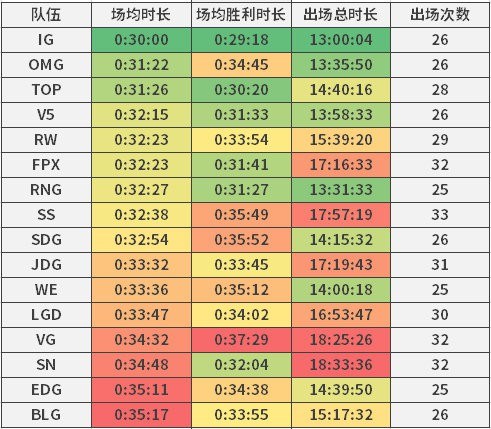 《英雄联盟》官方公布战队比赛场均时长:iG永不加班快报
