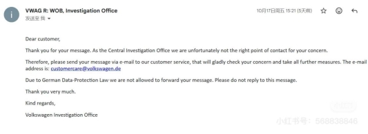 多位车主表示,维权过程充满无助。以田先生为例,他在数周内先后联系两家4S店,均被告知 “厂家只同意更换传感器,我们无权限处理”,拨打上汽大众400热线多次未获回复,通过车质网提交投诉材料,甚至发邮件至德国大众总部,均未得到实质性回应。
