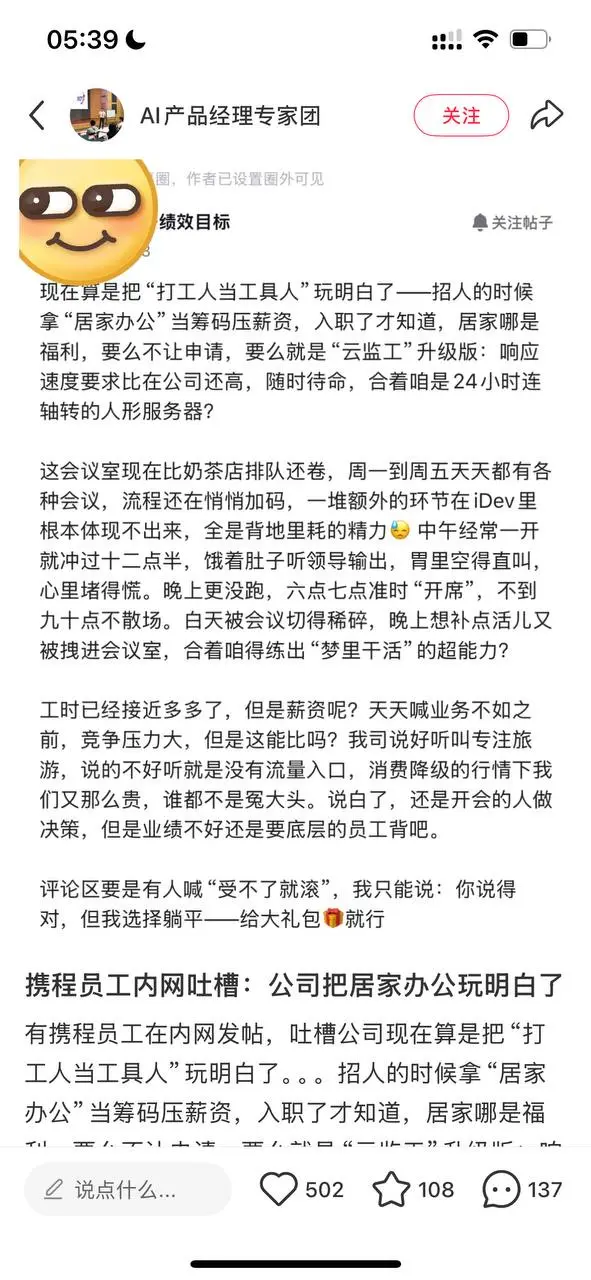 当然,在实际执行过程中,网上也出现了一批自称携程内部员工的吐槽。