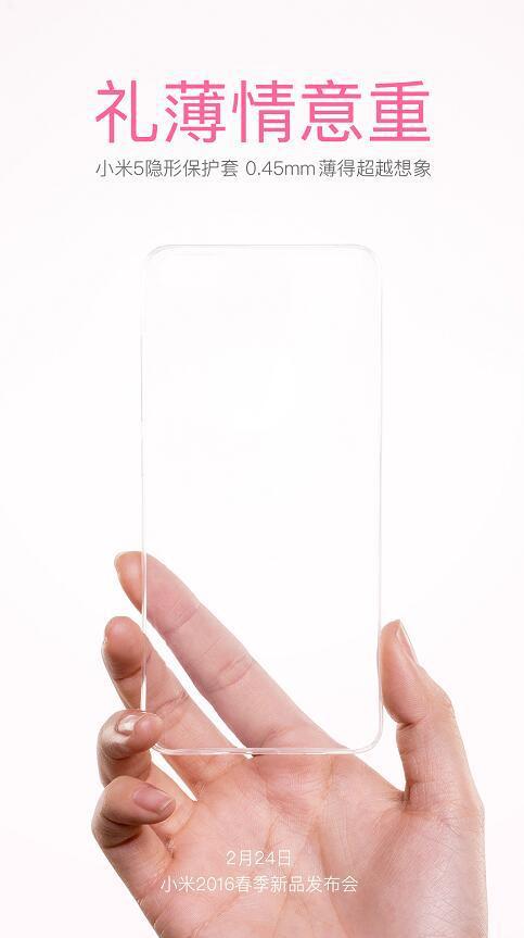据悉,该款透明清水保护套是对应即将发布的小米5使用,整个保护套的厚度仅为0.45mm。小米官方称:“礼薄情意重,小米5隐形保护套,0.45mm薄得超越想象”。