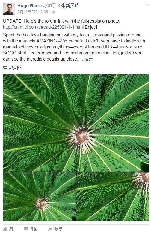 日前,小米总裁林斌和小米副总裁Hugo Barra相继在社交媒体上发布了小米5拍照的原图和细节放大图,声称小米5的拍照技术非常了得。