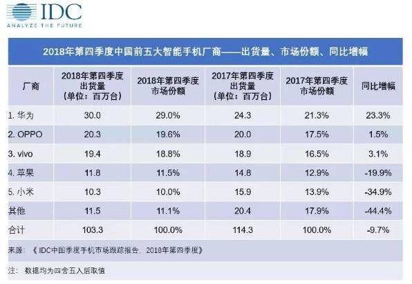 当下国内手机市场依旧被华为、OPPO、vivo、苹果、小米占据大部分,只是排位顺序发生了变化。稳坐第一的华为在去年可谓名利双收,反之,苹果的处境却令人堪忧,小米的发展势头也不尽如意。