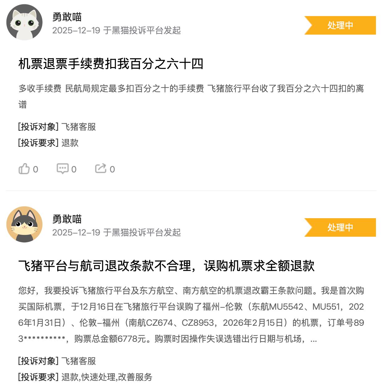 截至12月19日,在黑猫投诉平台上,针对“飞猪”的投诉量已高达114489条。这些投诉集中指向乱定价和退费不合理等核心痛点,而其中备受争议的“大数据杀熟”问题,更是成为了用户流失的焦点,让老用户寒心。