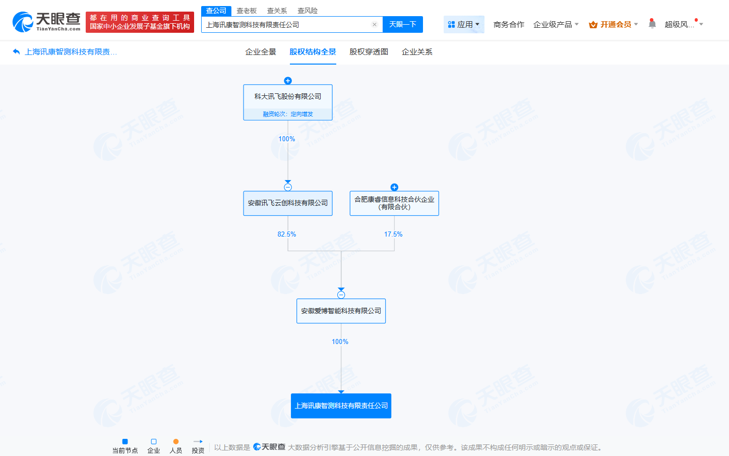 天眼查App显示,近日,上海讯康智测科技有限责任公司成立,法定代表人为苏莹,注册资本50万人民币,经营范围包括智能机器人销售、智能机器人的研发、计算机软硬件及外围设备制造等。股权全景穿透图显示,该公司由安徽爱博智能科技有限公司全资持股,后者由科大讯飞旗下安徽讯飞云创科技有限公司持股82.5%。