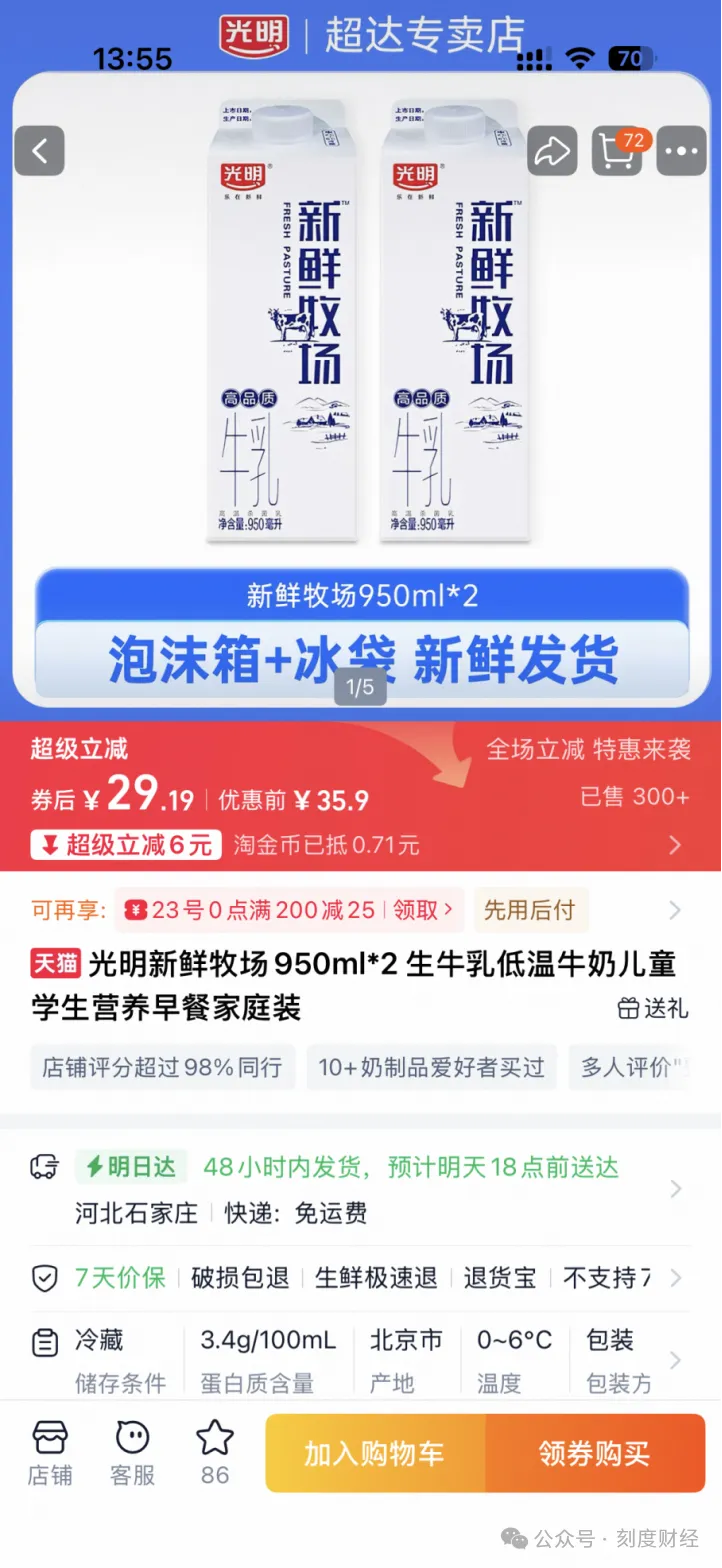 光明方面进一步解释称,根据《中华人民共和国商标法》及国家知识产权局的官方解释,“TM”并非法定的注册标记,不构成任何虚假或误导性表示。同时指出,相关报道将商标申请状态与商标使用行为的合法性混为一谈,严重失实。而且光明乳业已对相关电商平台的“鲜奶”宣传语进行调整删除。