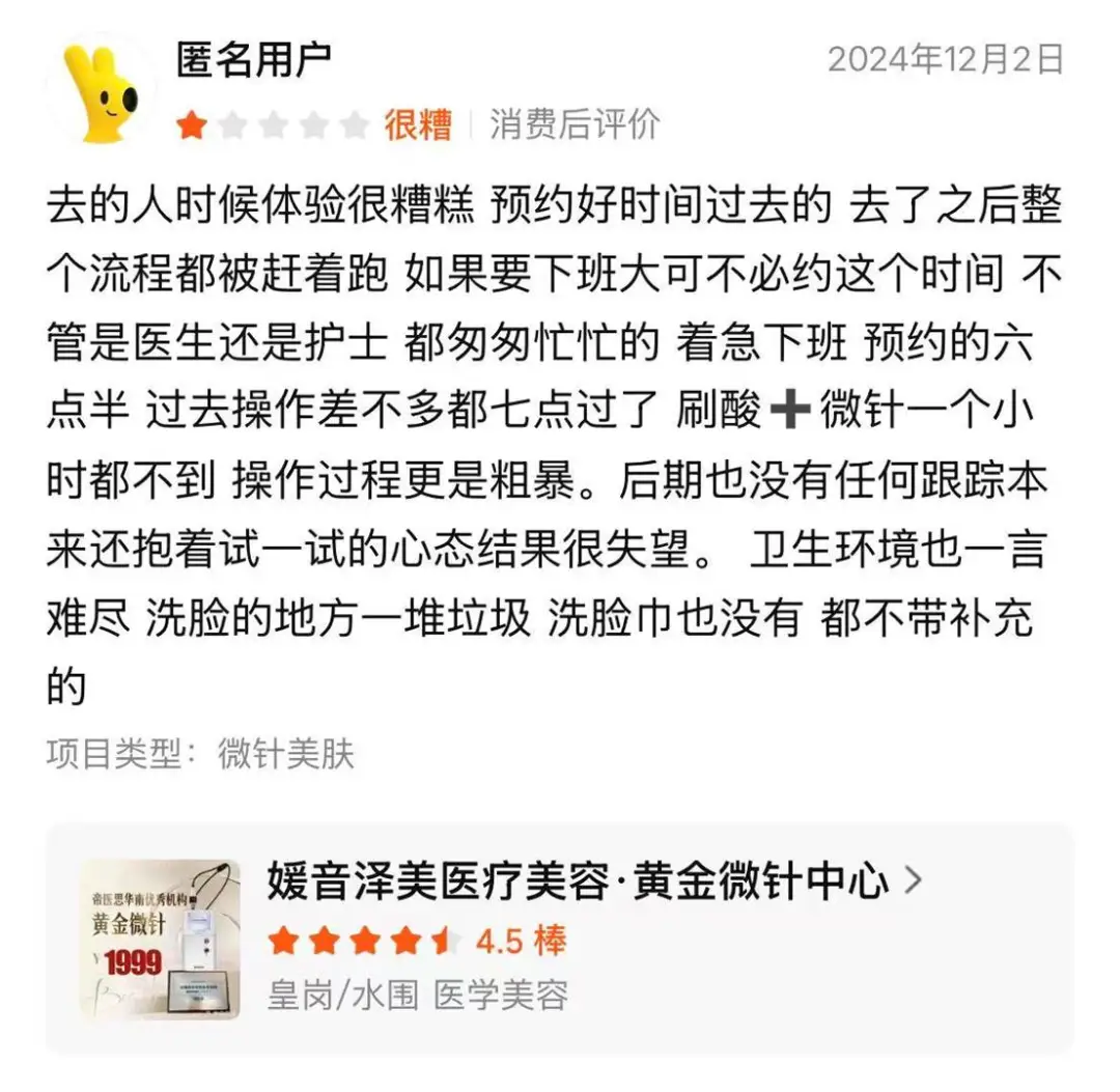 当一家医美机构连基本的服务都做不好,再响亮的招牌也终将被差评淹没。