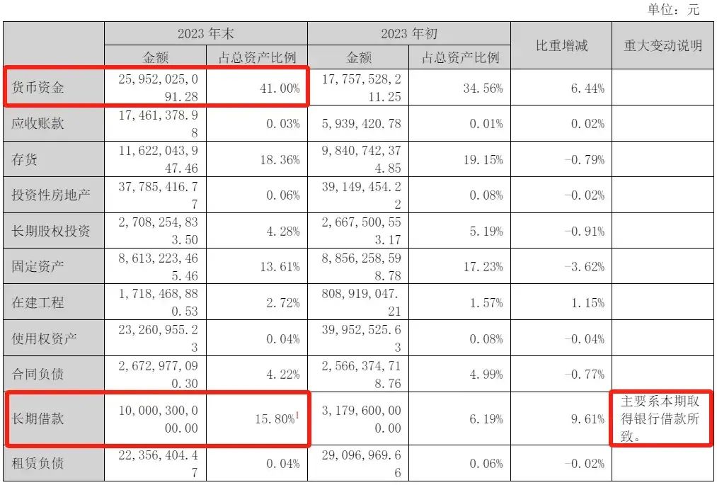 可蹊跷的是,在泸州老窖的资产负债表里,2022年突然新增31.8亿元长期借款,2023年更是增长到100亿元!增长68亿元。