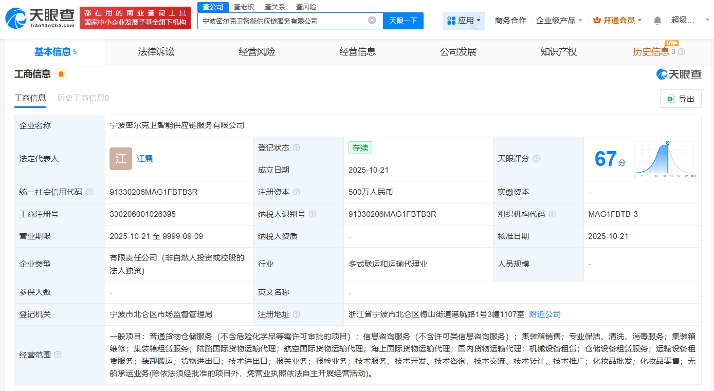 密尔克卫在宁波成立智能供应链服务公司 注册资本500万观点