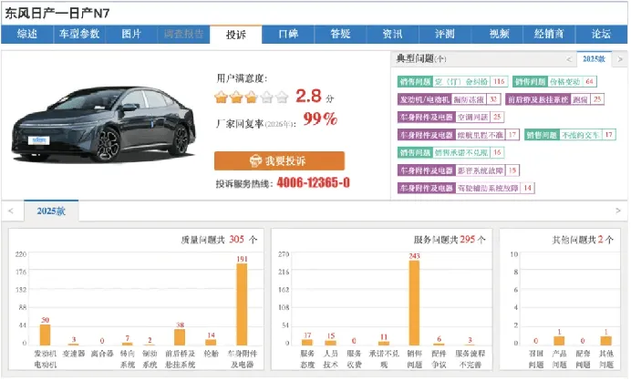 315期间,东风日产N6、N7两款新能源主力车型,正陷入大规模的投诉泥潭。车质网数据显示,两款车型的投诉量持续攀升,核心问题集中在驱动电机油泵故障、蓝牙钥匙失灵、车机卡顿死机、续航虚标等核心品控问题上。更让车主不满的是,面对批量出现的质量问题,东风日产虽启动了召回整改,却全程缺乏透明化告知,甚至将缺陷召回包装成“免费升级”,对车主的赔偿诉求区别对待,售后回复永远只有 “高度重视、持续跟进” 的敷衍话术。