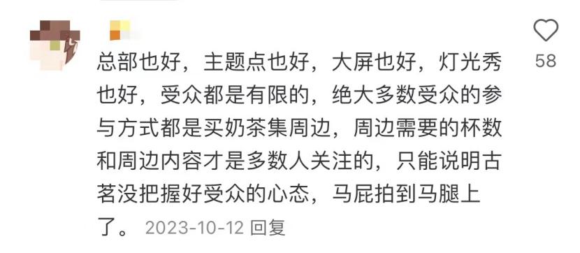 除此之外,在小红书上搜索古茗,近期出现的较多的争议内容是,古茗在推出联名产品时,设定了一次需要消费4杯、总共购买10杯以后,才能得到周边。这一玩法规定让许多消费者不满。一位小红书网友表示,“周边需要的杯数和周边内容才是多数人关注的,只能说明古茗没把握好受众的心态,马屁拍到马腿上。”