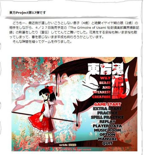 这次游戏的主角灵梦、魔理沙、妖梦三人将向着地狱而行,正式公布了东方Project系列第17部作品——《东方鬼形兽》,并放出了几张游戏画面。