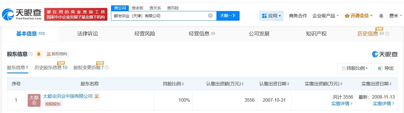 都会洪业(天津)有限公司成立于2007年7月,注册资本3556万美元,经营范围包括非居住房地产租赁、住房租赁、工程管理服务、信息技术咨询服务等。股东信息显示,该公司由新东方旗下大都会洪业中国有限公司全资持股。