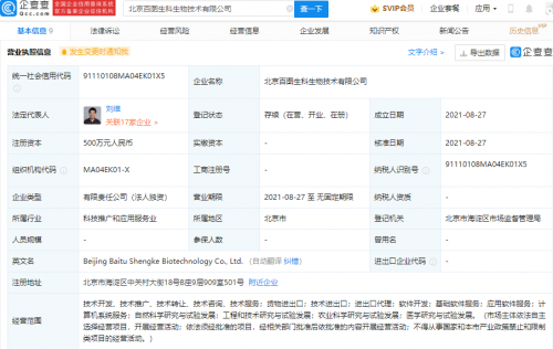 百度关联公司成立生物技术公司,经营范围含医学研究与试验发展等快报