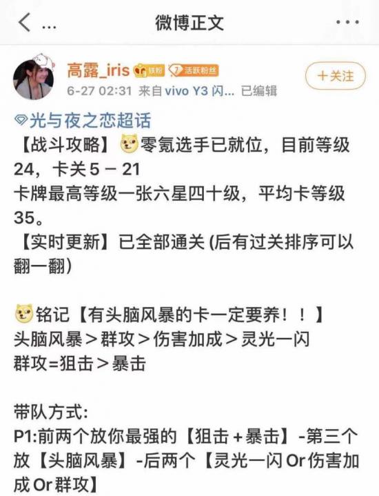 但随着玩家越来越多,不少用户开始在超话和小红书发布零氪攻略,未来玩家对游戏玩法探索度加深,《光与夜之恋》也许会进入攻略党与氪金党共存的时代。